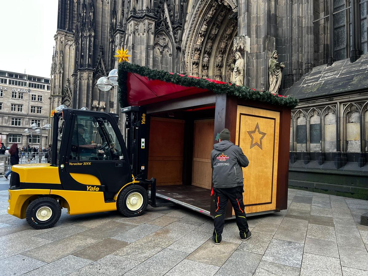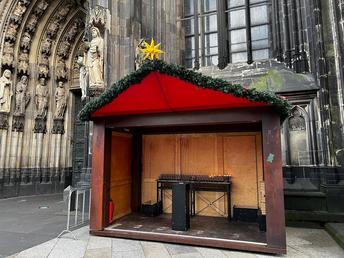 Aufgrund der aktuellen Sicherheitslage öffnet der Dom bis auf Weiteres nur zum Gottesdienst. Vor dem Petersportal können Gläubige an einem provisorisch aufgestellten Weihnachtsmarktstand eine Kerze für den Frieden entzünden.