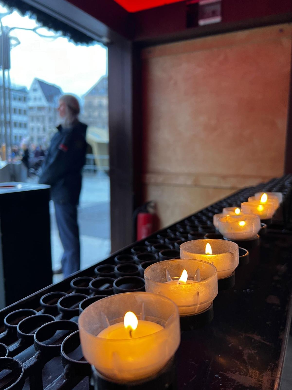 As the current security situation does not allow worshippers to light a candle for a particular cause in Cologne Cathedral, Cologne Cathedral has improvised a substitute at short notice with the kind support of the Cologne police and the operators of the Christmas market at Cologne Cathedral: A Christmas market stand has been set up next to St. Peter's portal of the cathedral this afternoon and equipped with some candle benches from Cologne Cathedral. There, everyone has the opportunity to light a candle as a substitute - for their very private concerns, but also as a sign of peace in these crisis-ridden times. "Glory to God in the highest and peace on earth: That is the Christmas message par excellence," says cathedral provost Msgr. Guido Assmann. "Everyone who lights a candle in front of Cologne Cathedral these days is also sending a sign of peace. May this sign of peace grow and spread and shine out into the whole world as a sign of reconciliation."