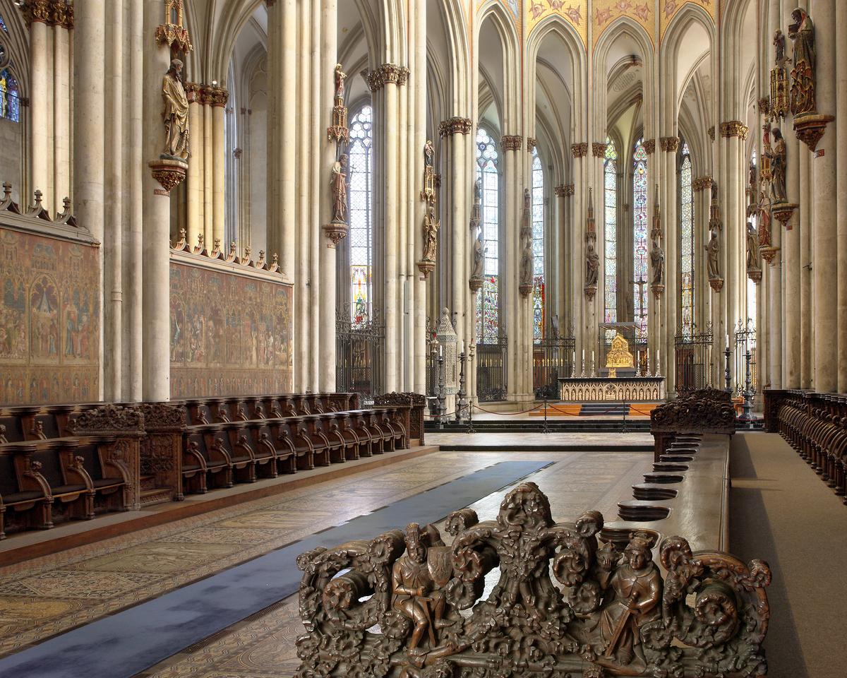 Köln, Dom, Binnenchor, Blick über das Chorgestühl, Ansicht von Südosten