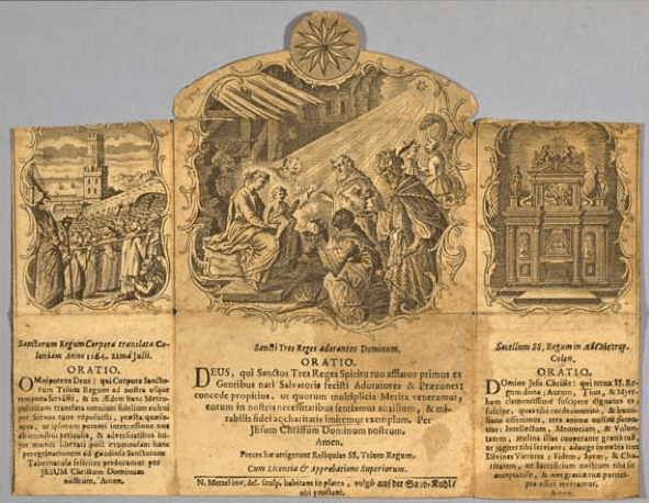 Allmächtiger, barmherziger Gott, als Pilger sind wir heute unterwegs zum Kölner Dom. Hier verehrt die Kirche in besonderer Weise die Heiligen Drei Könige. Auf ihrer Suche nach der Wahrheit des Lebens folgten sie dem Stern, der sie zum Licht der Welt führte. Mit Gaben kamen sie zu Jesus und Maria, seiner Mutter. Beschenkt kehrten sie heim in ihr Land als Boten deines Lichts.