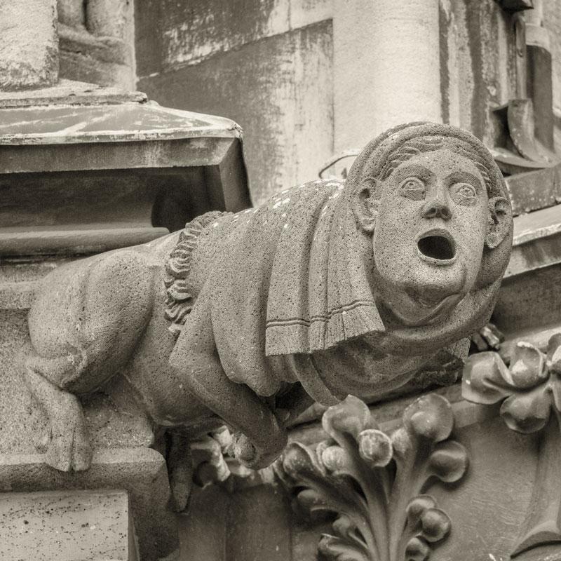 This gargoyle is situated in a prominent place on the axial chapel of Cologne Cathedral.