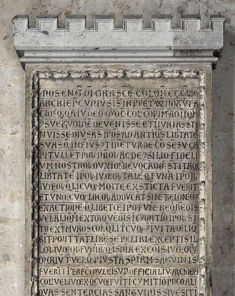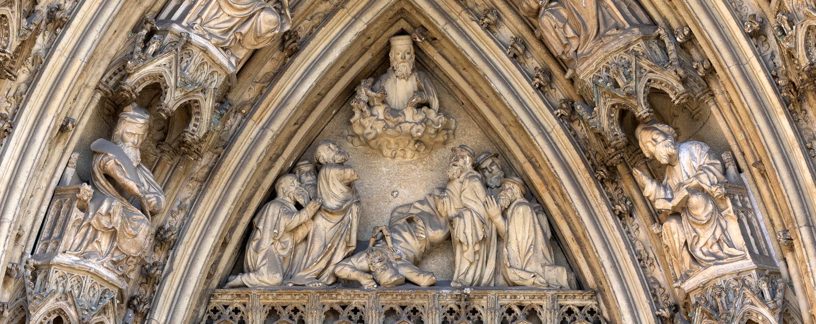 On the southern chapel pier of the axial chapel is a gargoyle with unambiguously anti-Jewish motifs that dates from sometime around the year 1300..