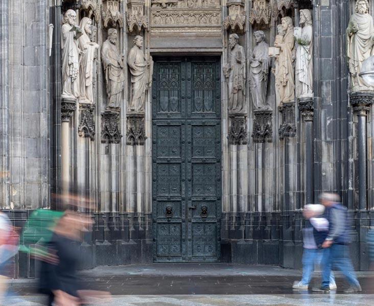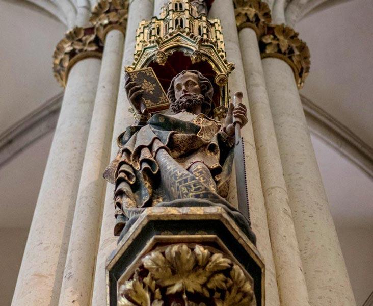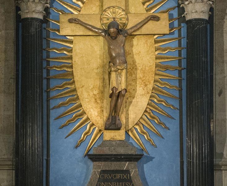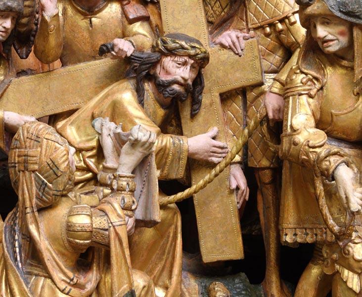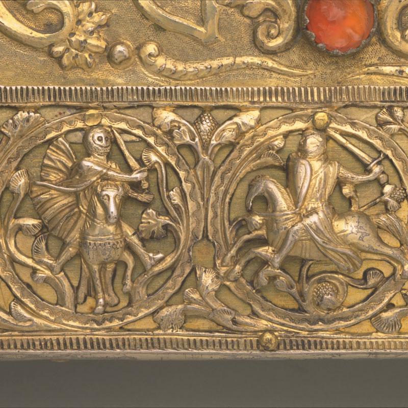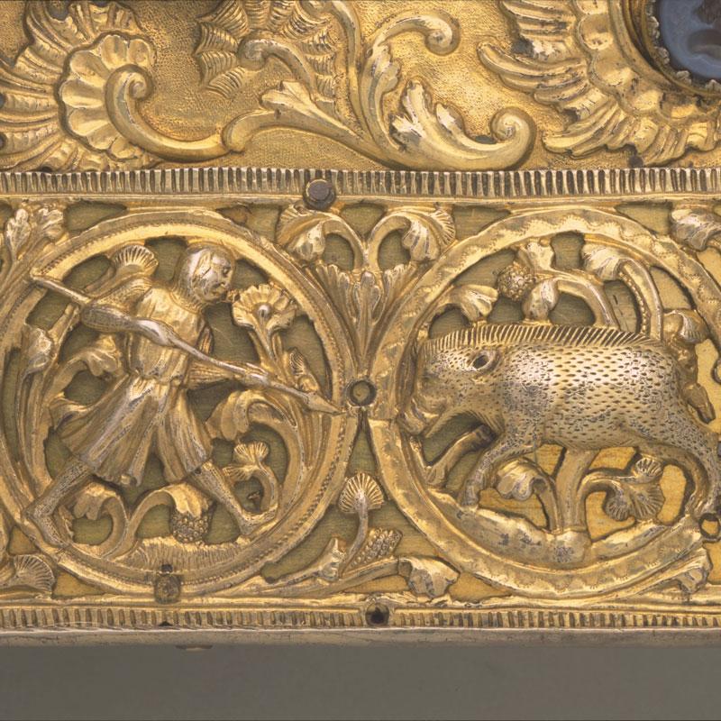 Die Vorderseite des Schreines wurde um 1200 von König Otto IV. gestiftet. Sie ist als einzige aus reinem Gold gefertigt.