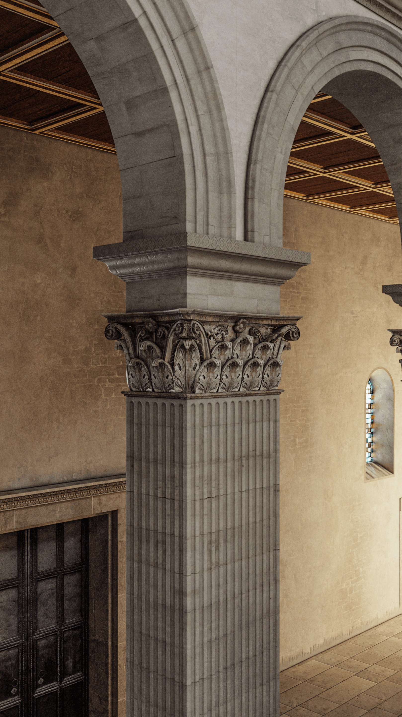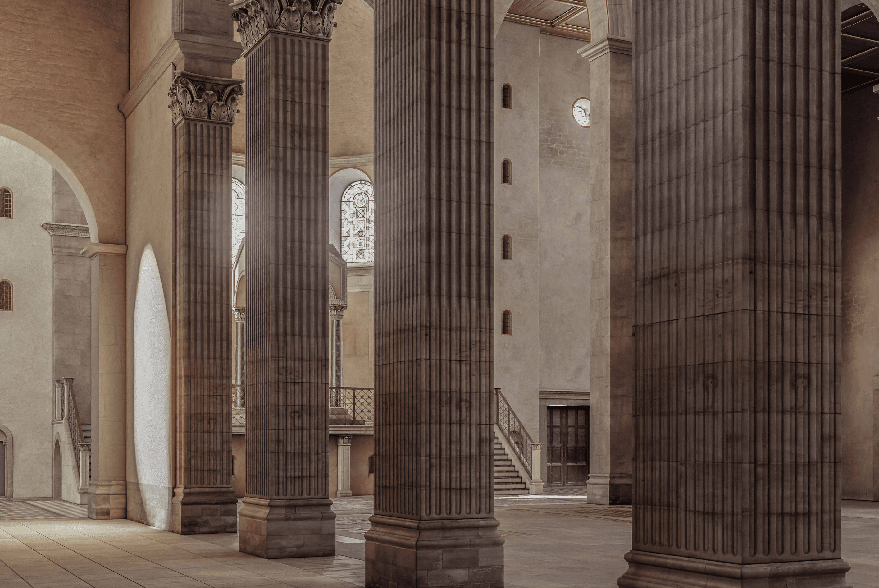 Während bei einer Säulenbasilika die maximale Höhe der Säule von ihrem Durchmesser bestimmt wird, konnten rechteckige Pfeiler je nach Größe seines Querschnittes wesentlich variabler in die Höhe gebaut werden.