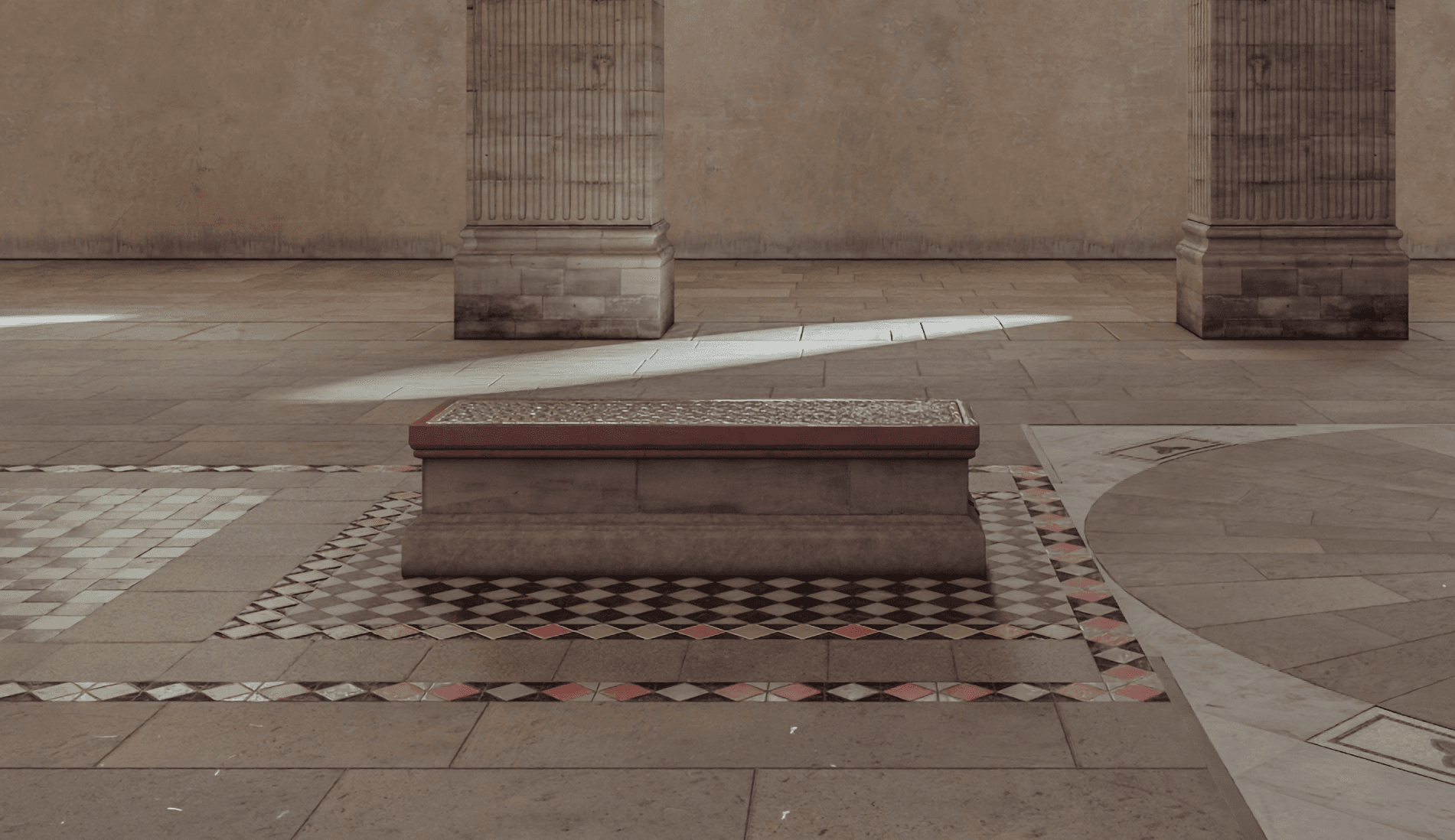 Zu sehen ist hier die Rekonstruktion der älteren Phase des Domfußbodens vor Ankunft der Gebeine der Heiligen Drei Könige im Alten Dom im Jahre 1164.