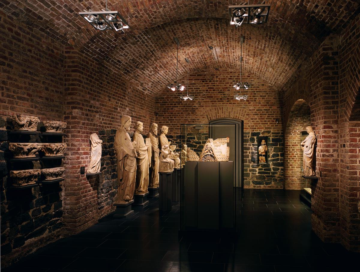 Herzstück der Schatzkammer ist der zehn Meter hohe mittelalterliche Keller unterhalb der heutigen Sakramentskapelle, dem 1277 von Albertus Magnus geweihten Kapitelsaal und der späteren Sakristei des gotischen Domes. In diesem einzigartigen Raum lassen sich eindrucksvolle bauliche Zeugnisse aus der römischen Zeit bis ins Hochmittelalter entdecken – darunter Teile der antiken Stadtmauer, salische Säulen und gotische Fundamentmauern. Das eindrucksvolle Ambiente bildet den Rahmen für rund 300 Exponate, verteilt auf sechs thematisch gegliederte Ausstellungsräume.
