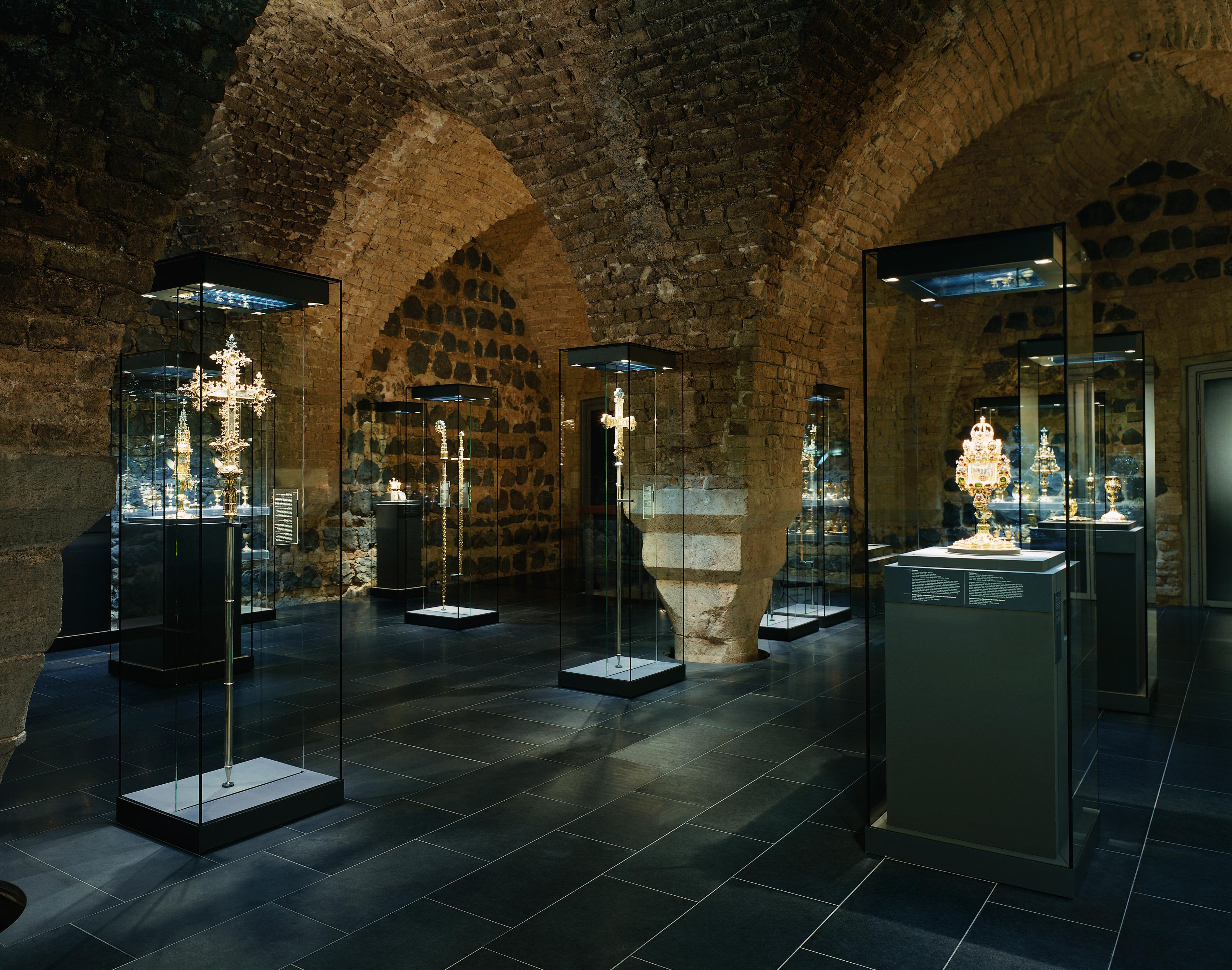 Der heutige Schatz umfasst liturgische Geräte wie Kelche, Monstranzen und Altarkreuze, bischöfliche Insignien wie Stäbe, Brustkreuze und Ringe sowie kostbare Gewänder und Handschriften.