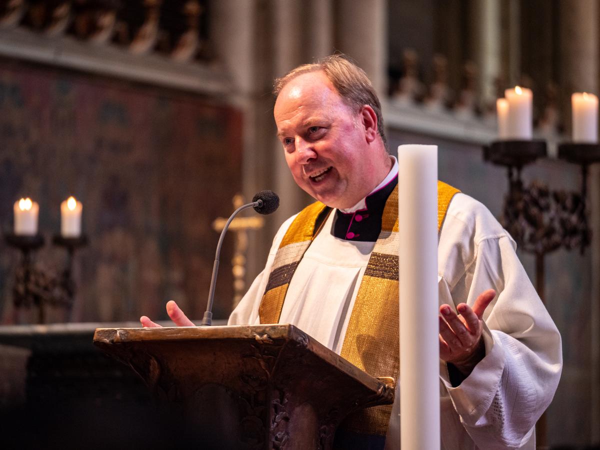 Dom- und Stadtdechant Msgr. Robert Kleine würdigte in seiner Predigt den Kölner Dom, als Abbild des Himmlischen Jerusalems. „Dieser Dom sollte ein bisschen Himmel auf die Erde bringen“, so Kleine. „Die Heiligen-Figuren draußen am Dom und auch hier drinnen nehmen unseren Blick sozusagen mit nach oben bis in das Gewölbe.“