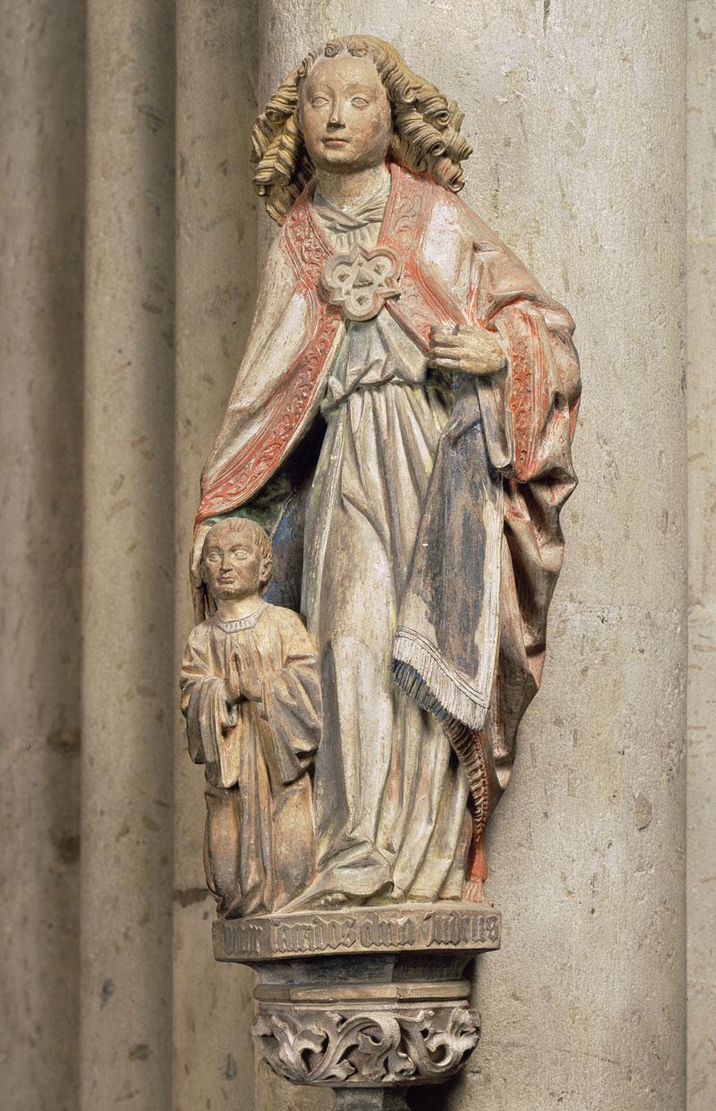 The extravagant and costly donations of Victor of Carben should be seen in this light. His conversion to Christianity and his focus on Judaism also play a major role. The very fact that the description of the donor as 'sacerdos olim Judeus' is repeated several times in both groups speaks volumes. The evidently Marian focus of both groups should be seen as a conscious renunciation of the Jewish religion, which rejects the concept of the virginity and divine motherhood of Mary, and also illustrates the convert's devotion to the Mother of God. Saints Barbara and Catherine were popular saints in the Middle Ages. It is possible that Victor of Carben saw himself as a successor of the two saints, because although born as pagans, both women were later baptised and became martyrs for the Christian faith. With his extravagant donation, Victor of Carben is publicly documenting his complete renunciation of the religion of his ancestors. At the same time, by approving the donation, the Cathedral Chapter is also corroborating its anti-Jewish position in the controversy surrounding Pfefferkorn's opinions.