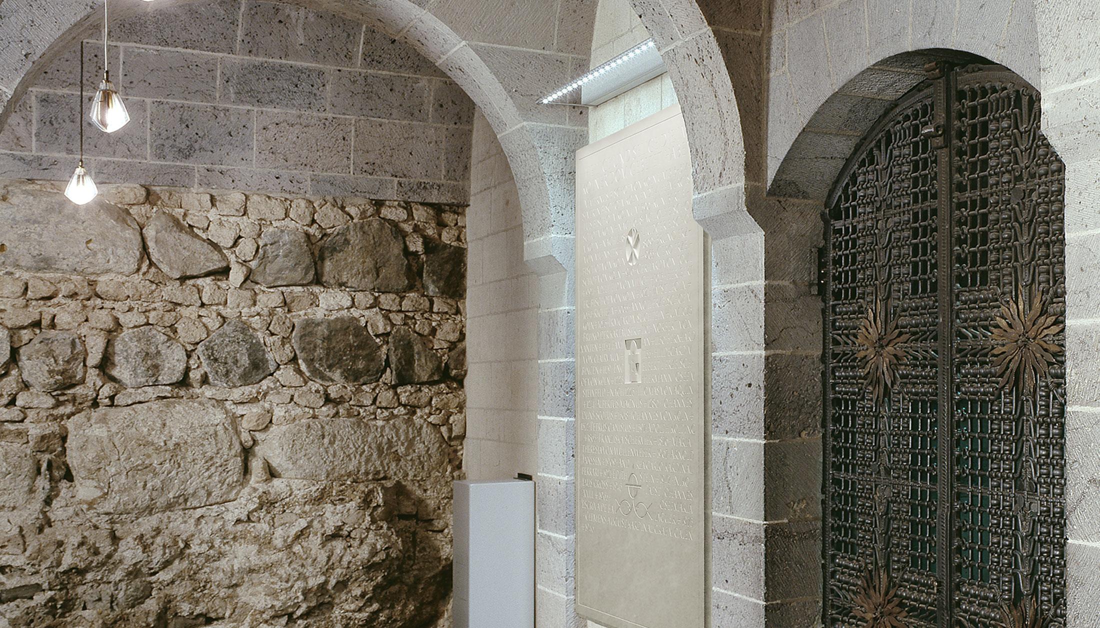 Die Stuckdecke im leicht erhöhten Mittelschiff stammt von Erlefried Hoppe. Die dreischiffige Anlage dient als Vorraum und Grabkapelle zur östlich anschließenden erzbischöflichen Gruft hinter dem schmiedeeisernen Gitter von Paul Nagel.