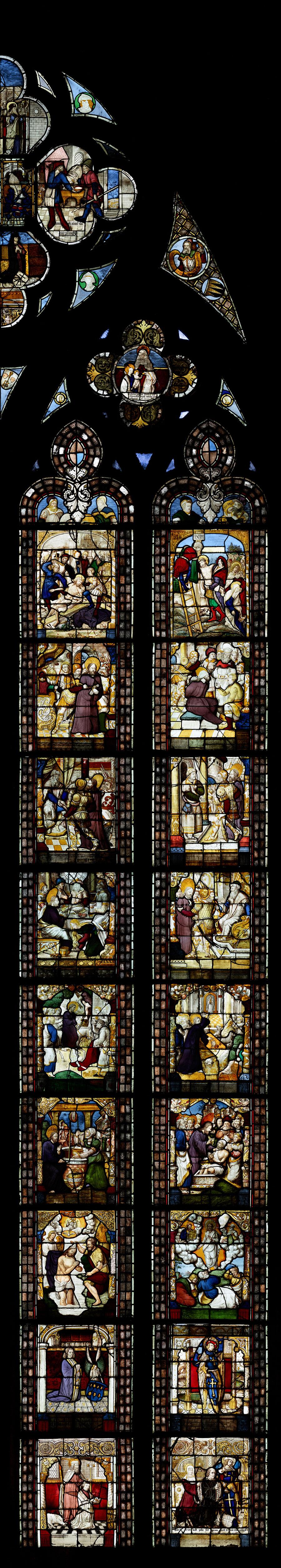 Sie zeigen Szenen aus dem Leben Christi. Die Glasmalereien gehörten urspünglich nicht zusammen. Es sind Reste zweier Bildzyklen aus Kölner Kirchen, die zu Beginn des 19. Jahrhunderts abgebrochen wurden. Ein Teil der Scheiben wurde um 1525 geschaffen, die anderen entstanden um 1560.