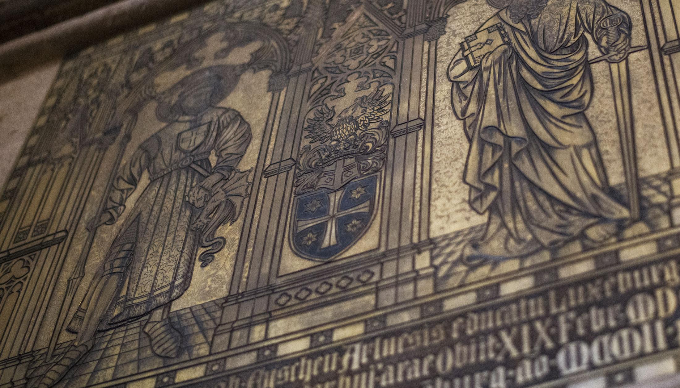1902 wurde die Gedenkplatte für den 1664 verstorbenen Domkanoniker Georg von Eyschen geschaffen und an seinem Begräbnisort in der Stephanuskapelle errichtet.