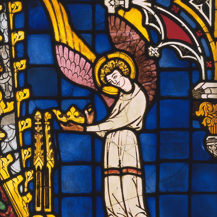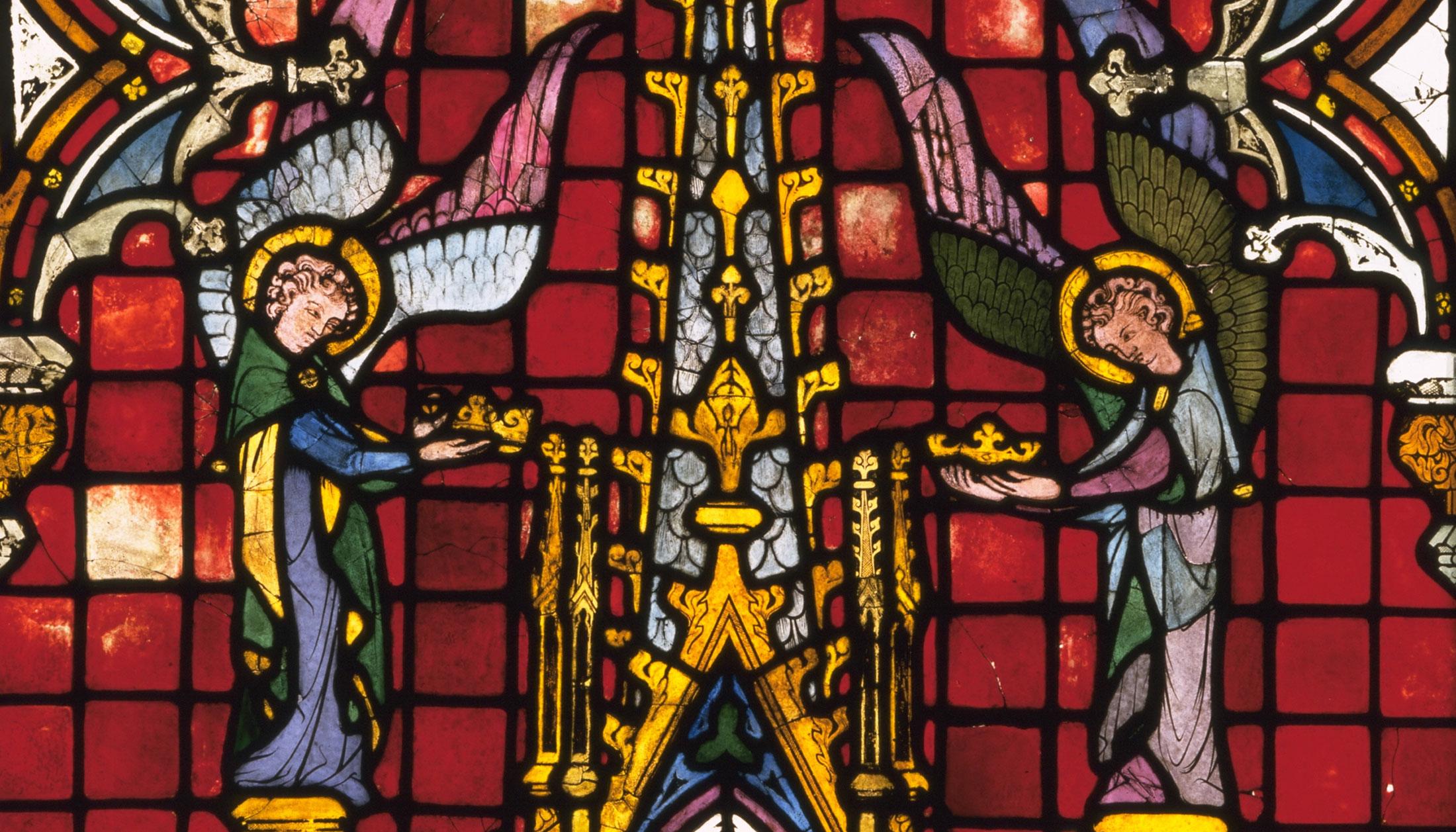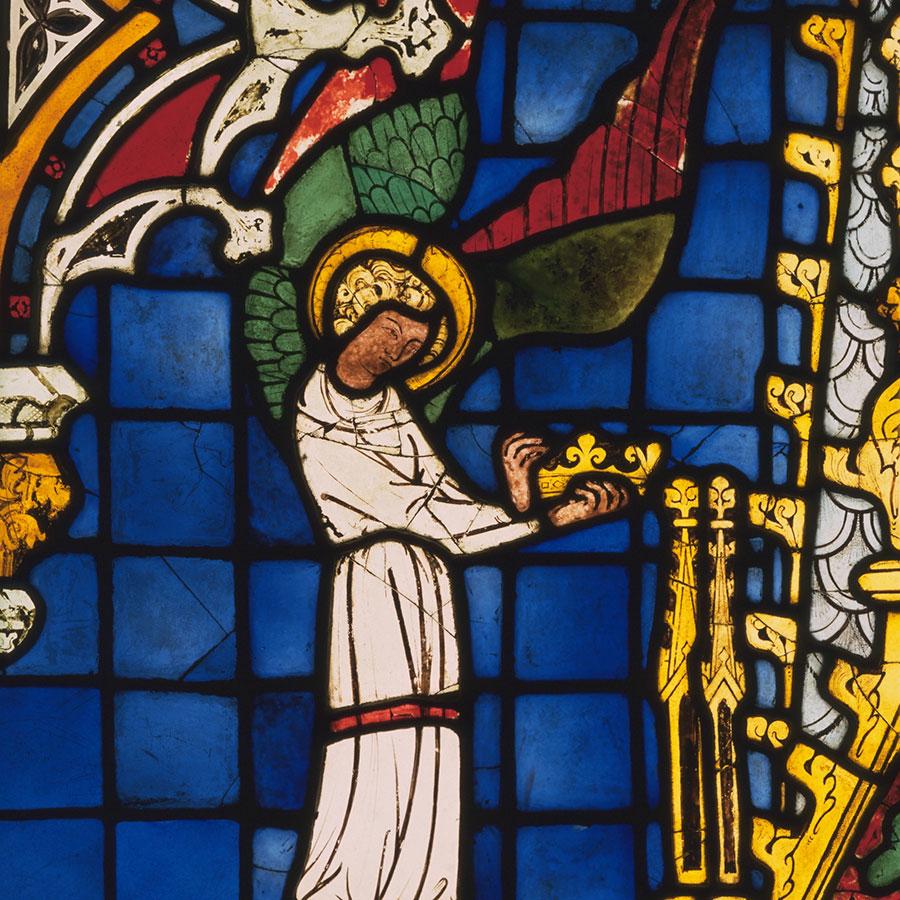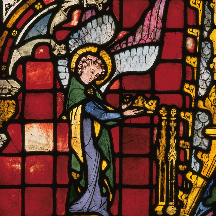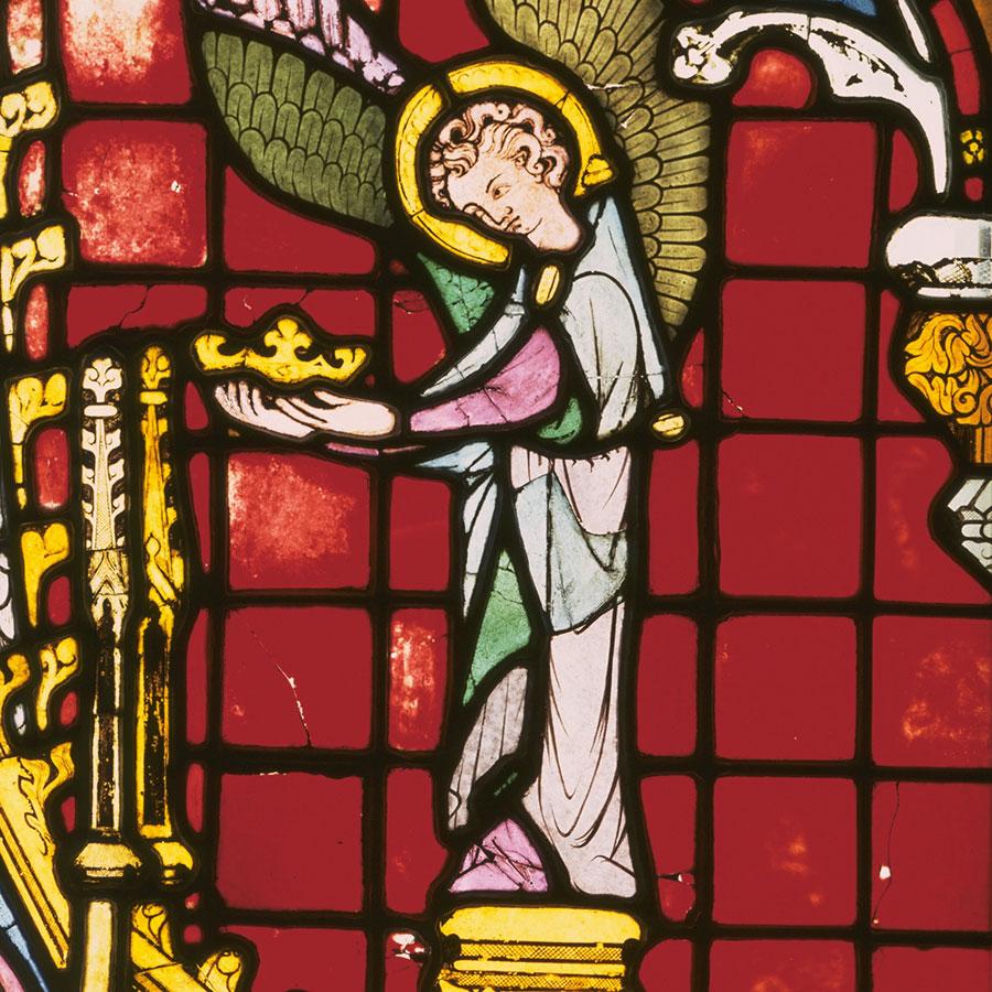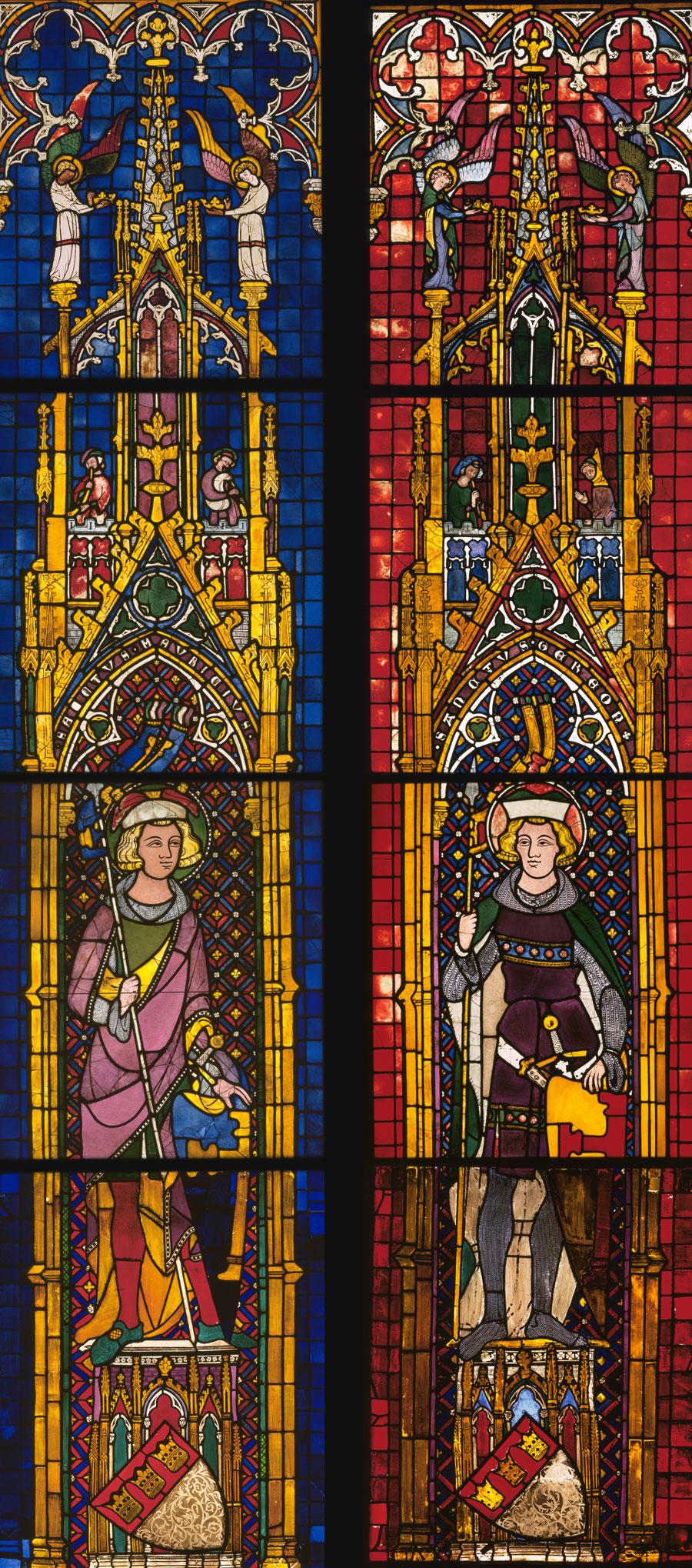 Die beiden Heiligen Gereon und Mauritius gehörten zur Thebäischen Legion. Deshalb sind sie hier als Ritter in zeitgenössischer Rüstung dargestellt.