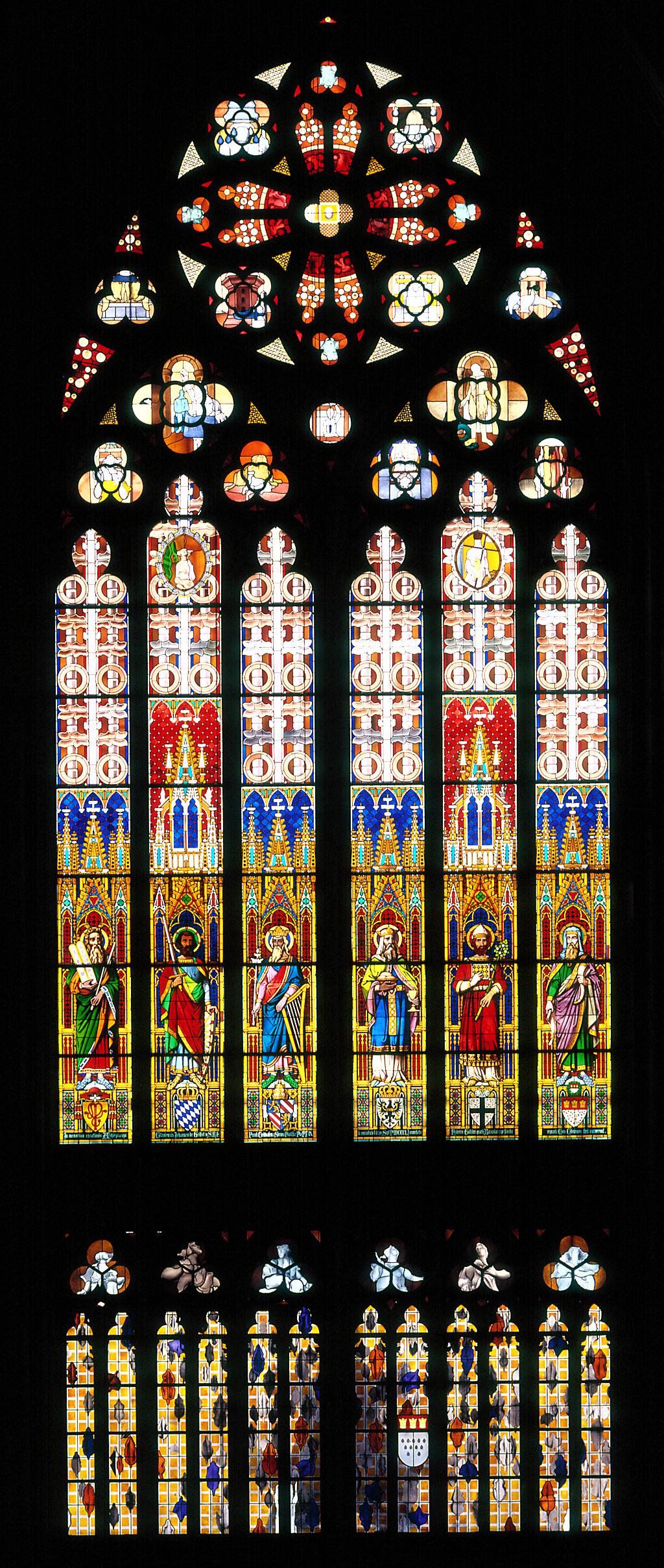 Das große Fassadenfenster des Nordquerhauses stifteten Kölner Bürger anläßlich der Erhebung von Erzbischof Johannes von Geissel zum Kardinal im Jahre 1850.
