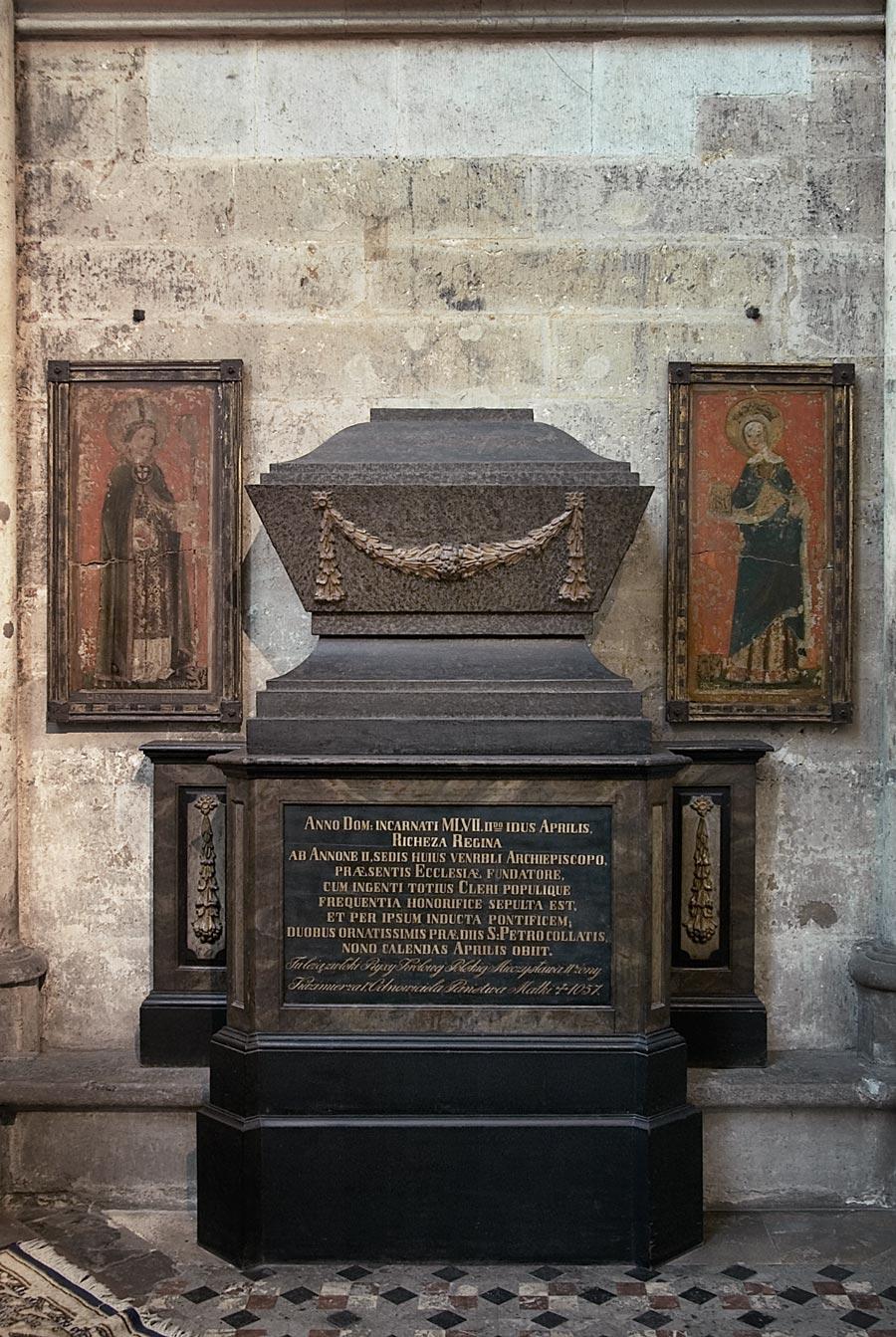 Richeza war schon zu Lebzeiten eine Wohltäterin des Domes. Nach ihrem Tode 1063 wurde ihr ein Grab in der Stiftskirche St. Maria ad Gradus im Osten des Domes errichtet. 1817, nach Auflösung des Stiftes, gelangte der hölzerne Schrein mit den sterblichen Überresten in den Dom. Für ihn wurde die klassizistische Grabanlage erbaut. Zu beiden Seiten des Grabmals sind auf Schiefertafeln die Bildnisse Richezas und des Erzbischofs Anno II. zu sehen. Sie stammen von der spätmittelalterlichen Grabanlage aus St. Maria ad gradus.